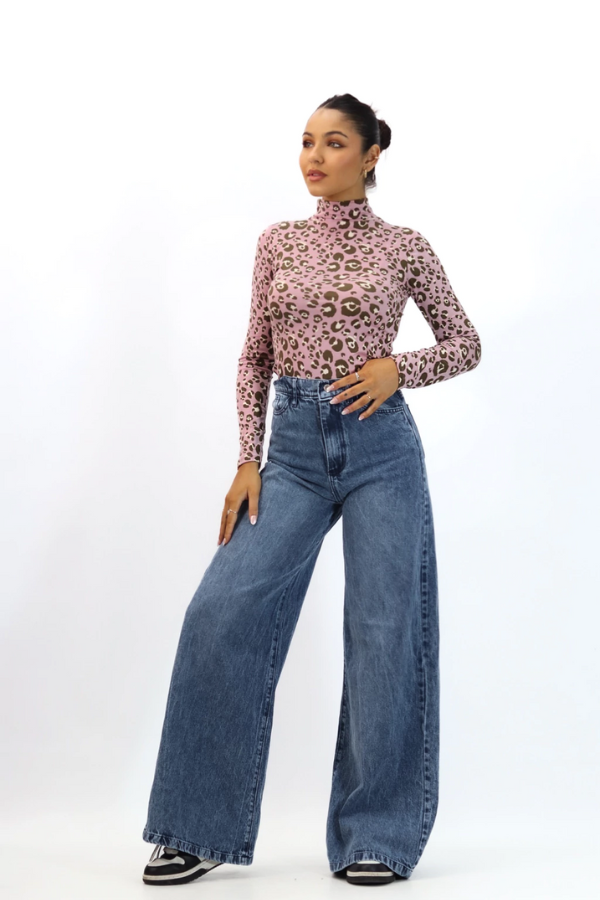 PANTALON WIDELEG RIGIDO CON LAVADO STONE, CINTURA ALTA, TALLE 36 A 50