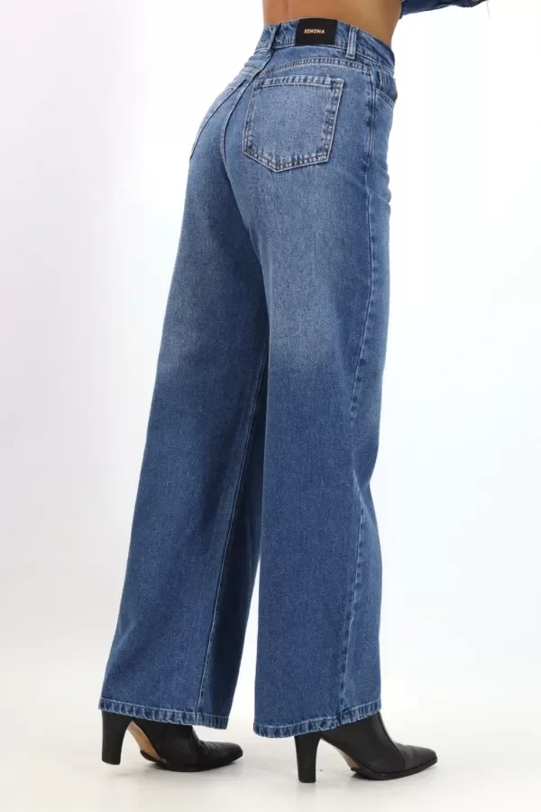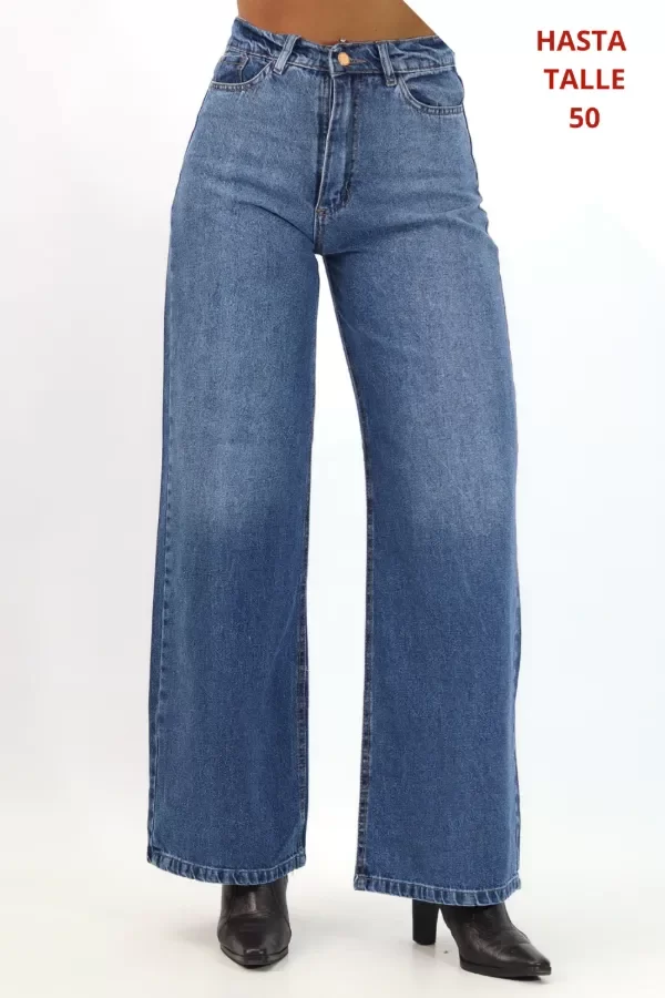 PANTALON WIDELEG RIGIDO CON LAVADO STONE, CINTURA ALTA, TALLE 36 A 50